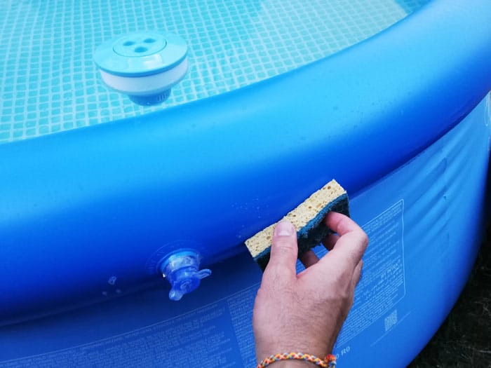 D’abord, il va remettre de l’air dans la piscine. Cela va l’aider à avoir un peu plus de visibilité sur le problème. Il doit y mettre juste le minimum. Ensuite, il faudrait appliquer le produit sur le trou. Si c’est du mastic, on en applique un bout et on lime cela sur le trou et ses environs avec les doigts. Ainsi, on s’assure que cela entre bien dans la paroi fissurée. Une fois que c’est fait, l’on laisse reposer durant le temps indiqué sur le tube. Il faudra verser de l’eau savonneuse sur l’espace colmaté. S’il n’y a pas de mousse, alors l’opération est une réussite.