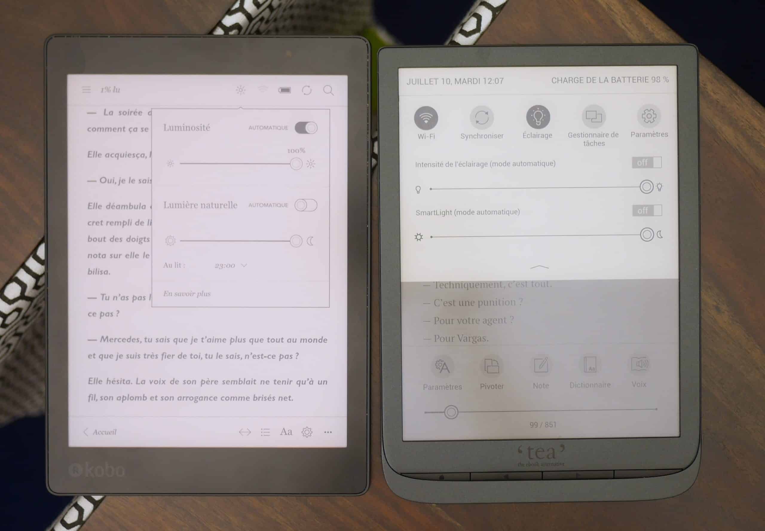 La plupart des liseuses récentes embarquent un filtre lumière bleue, qui donne à l’écran des teintes plus chaudes le soir. Les Kindle d’entrée de gamme et Paperwhite font exception et en sont dépourvues.